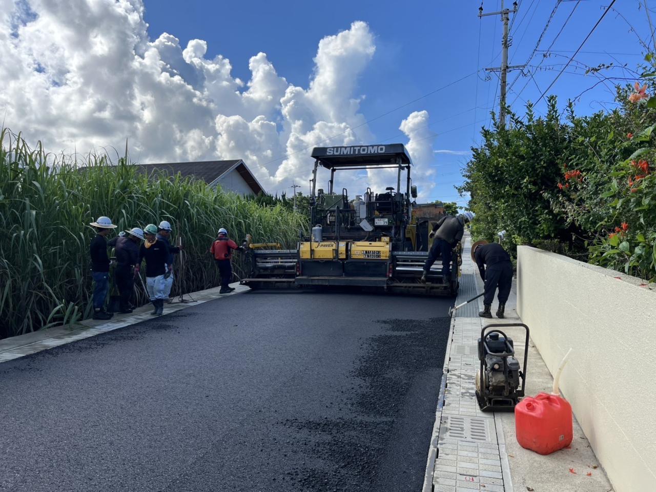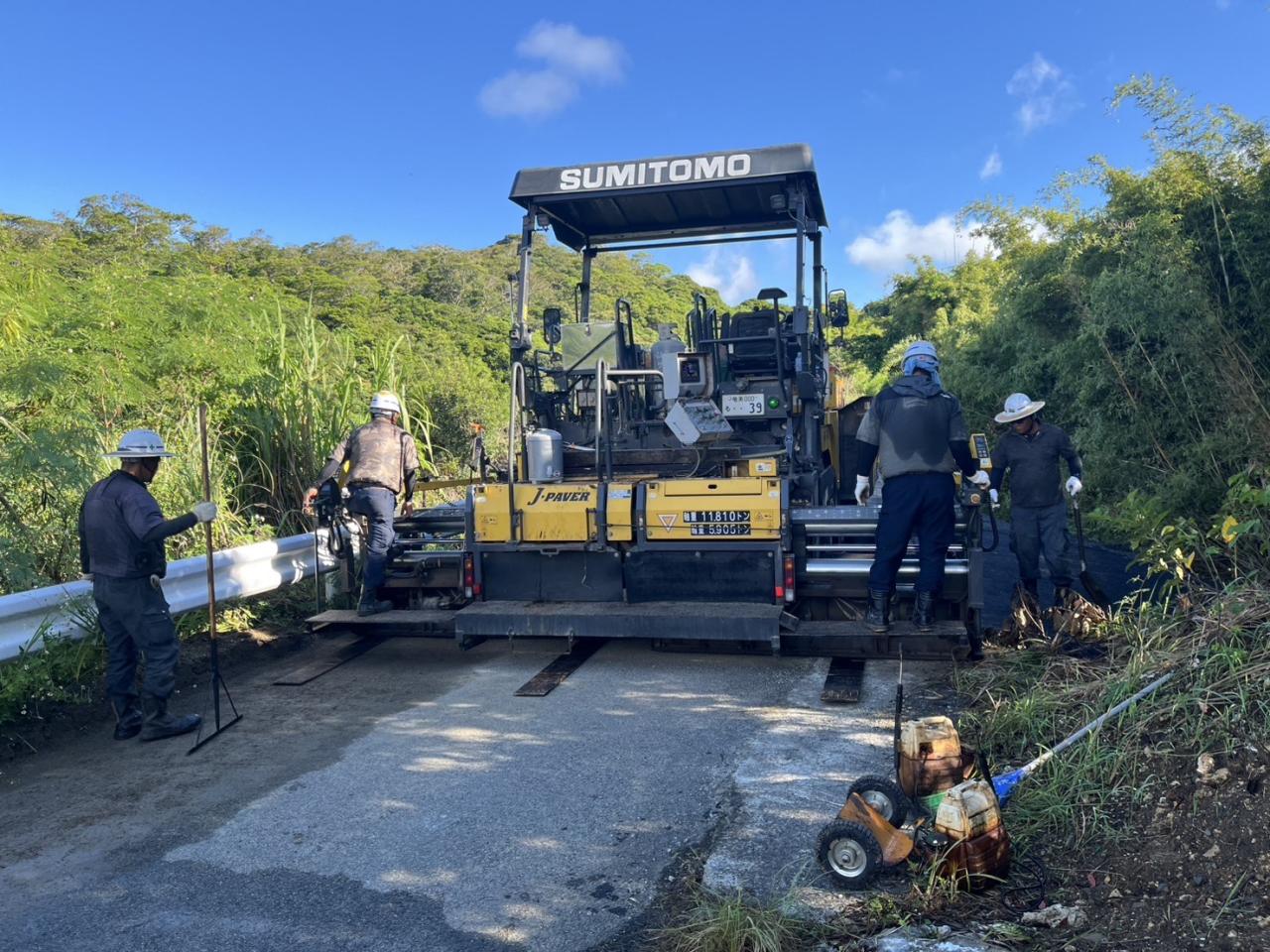 先月隣の島へ若手2人で舗装出張に行きました。 普段と違う環境で仕事ができいい経験になったと思います。
