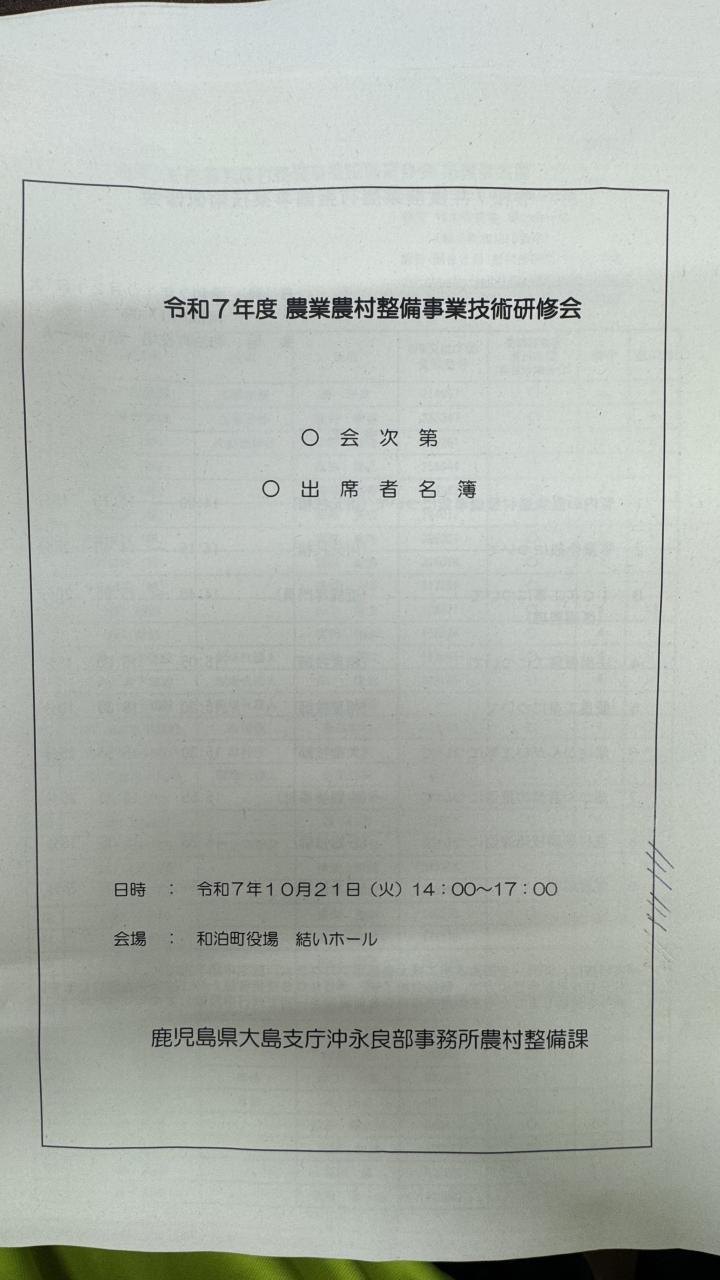 本日は令和7年度 農業農村整備事業技術研修会に会社から4人参加させていただきました。